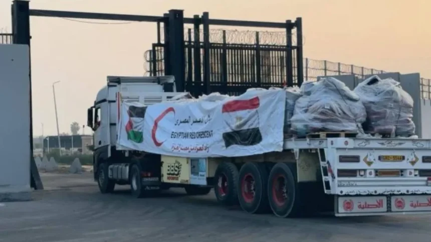 Egypt Today explains that the “Zad Al-Izza: From Egypt to Gaza” initiative is implemented by the Egyptian Red Crescent, which manages the logistics of collecting, loading, and transporting aid from warehouses inside Egypt to the Rafah crossing. The report describes how convoys typically comprise hundreds of trucks carrying categorized cargo, including food, medical equipment, pharmaceuticals, hygiene kits, and fuel, with manifests prepared to meet humanitarian standards and to facilitate inspection and coordination procedures. According to Egypt Today, the ERC also liaises with international aid organizations operating inside Gaza to align shipments with assessed needs on the ground.